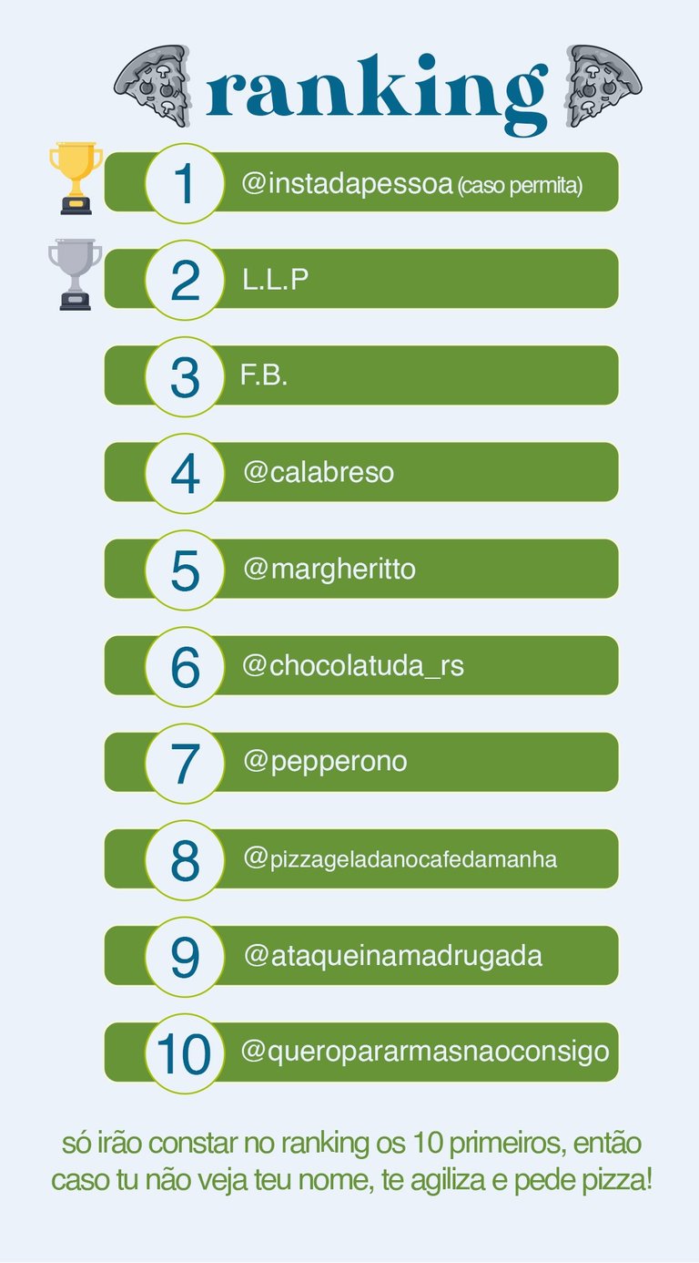 O ranking será atualizado nesta própria página todos os finais de domingo, e para ter fácil acesso ao link, irei deixar anexado na publicação do instagram.